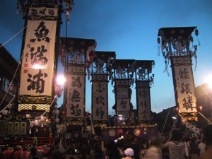 24時間ぶっ通しの祭りは、奉燈に灯が入る夜がすばらしい。低い軒先をかすめながら、ゆらゆら動きつつ暗闇を進む奉燈は、ナウシカの巨神兵が燃える街の上を歩く姿とオーバーラップする。