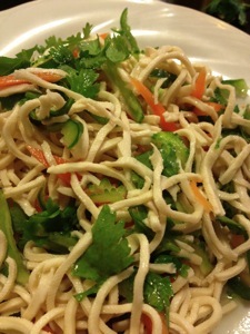 いつもの大連料理「龍」に小さなゴーヤを持ち込み、生のままの薄切りを干し豆腐の千切りと和えてもらう。干し豆腐は中国でよく食べるようになって好きになった。独特の弾力を持つ食感と、飽きのこない素直な風味が美味しい。もともと強烈なパクチーと一緒に和える皿の中で、わがゴーヤは完全に埋没している。何とも存在感の希薄なやつだが、それでも注意して味わうと、遥か彼方で苦みを主張しようとしている。可愛い。