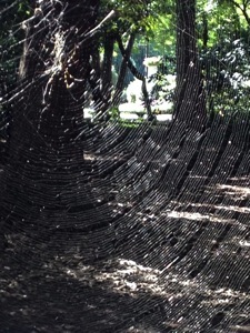 網を見ると5〜6本おきに少し間隔が広いところが規則正しく並んでいて、音楽のスコアのようにも見える。彼女はどんな歌を歌うのだろうか。