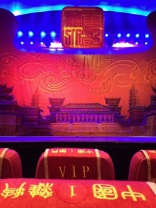 前から3列目のど真ん中、座席の背に金糸でVIPの文字が刺繍されているところに陣取って初めての雑技を楽しんだ。最初から最後まで開いた口が塞がらない。おそらく全ての演技で、人体の左右対称性を活かした絶妙な重力均衡を見せつけていて、これも中国の建築と相通ずるな、などと後付けで書いてはいるものの、実際は「うをーっ!!すげーっ!!」の連続だ。難易度の高い技はステージ上で失敗する場面もあったが、凄いのは成功するまで何度でも繰り返すことである。伴奏音楽も失敗すると巻き戻して、成功を強要しているようだ。演技者は場数を踏んで精神力も尋常ではないのだろう。失敗すると生命の危機に直面しそうなものがいくつもあったが、どうやって練習するのだろう?練習すれば誰にでも出来るってもんではない。練習しなければ誰にも出来ない。参りました。