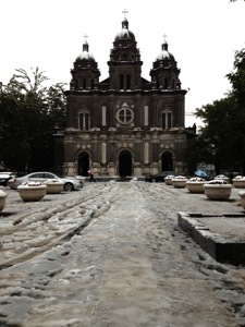 日曜なので教会に行く。中国のクリスチャンは一説に一億人を超えているというが、会堂を持たない所謂地下教会の場所は分からないので、10時前に着くように最も有名な王府井天主堂(1904)に行ってみた。なんと日曜礼拝は朝7:30から。とっくに終わっていてすでに聖歌隊の練習時間になっている。聖書や賛美歌が備えられているのでめくって見たりしてみた。賛美歌は5線の楽譜ではなく数字で音を表記するタイプのもの。なるほど。