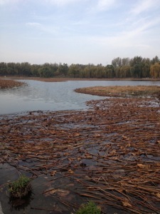 黄色いイチョウと風になびく柳、池の水面に浮かぶ枯れた蓮など、建築は破壊されても植物は美しい。破壊の衝動は自然に向かうのではなく、人工的な建築に向かうのだろうとは思うが、これらの植物が、破壊の後再び植えられたものかどうかは知らない。