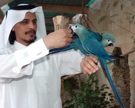 カタールのシェイク=サウドは絶滅寸前の希少動物を自分の私設動物園に集め、保護・飼育して繁殖させている。10年程前、磯崎さんのお供で彼の動物園に行ったことがある。その時、シェイク=サウドが最も愛していたのが全身真っ青のコンゴウインコ(Spix's Macaw)のつがいだった。
