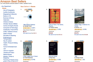 アメリカのAmazon、本の売れ行きランキングで、J.オーウェルの『1984』が1位になっているようだ。