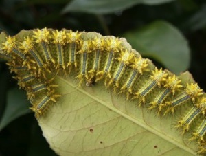 毛虫が何だったのか「柿、毛虫」を検索してみた。こいつだ。ヒロヘリアオイラガ(広縁青毒棘蛾)wikiによると「幼虫にある棘には毒があり、触れると強い痛みを伴う皮膚炎を起こす。刺されると皮膚炎になるおそれがあるので、飼育や駆除の際には注意が必要。刺されたら、毒棘をガムテープなどで抜いて抗ヒスタミン剤で消毒、ひどい場合は皮膚科などでの診療が必要となる。」